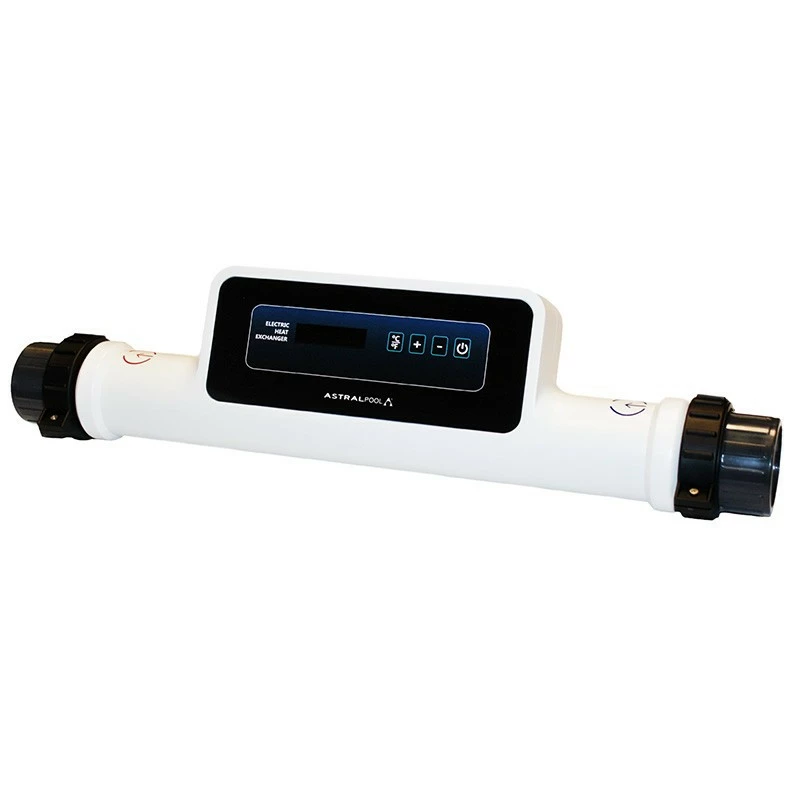 Intercambiador de calor eléctrico para la climatización del agua de piscinas disponible en una amplia gama desde 3 kw hasta 18 kw. De fácil instalación en el circuito cerrado del agua de su piscina, siempre conectado después de el sistema de filtración de su piscina.