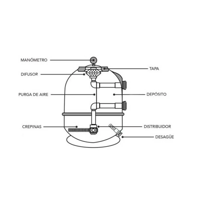 El filtro laminado que incorpora trabaja con arena de sílex o vidrio, un mecanismo de limpieza del agua realmente útil y muy eficiente. Fabricado en poliéster y fibra de vidrio, tiene una estética muy llamativa en color rojo. Incorpora un manómetro sobre su tapa que mide la presión interna y, por lo tanto, indica cuando necesita limpiarse.