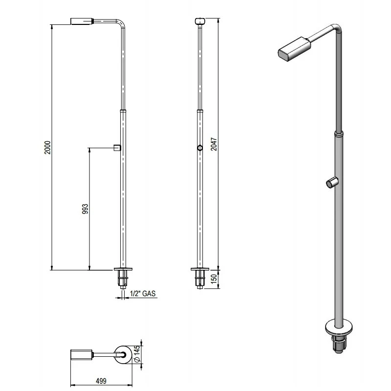 La ducha Minimal del fabricante Gre será una adquisición para su jardín que agradecerá disponer. Para situar en una zona externa y poder aclarar su cuerpo tras un baño en la piscina o para, simplemente, enjuagarse las manos o los pies.