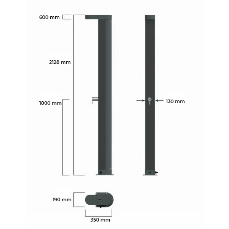 El modelo de ducha exterior Angel Solar de Astralpool es ideal para situar cerca de su piscina. De diseño sobrio y elegante, la ducha está fabricada con aluminio y plástico para hacerla resistente a las adversidades del clima y al agua.