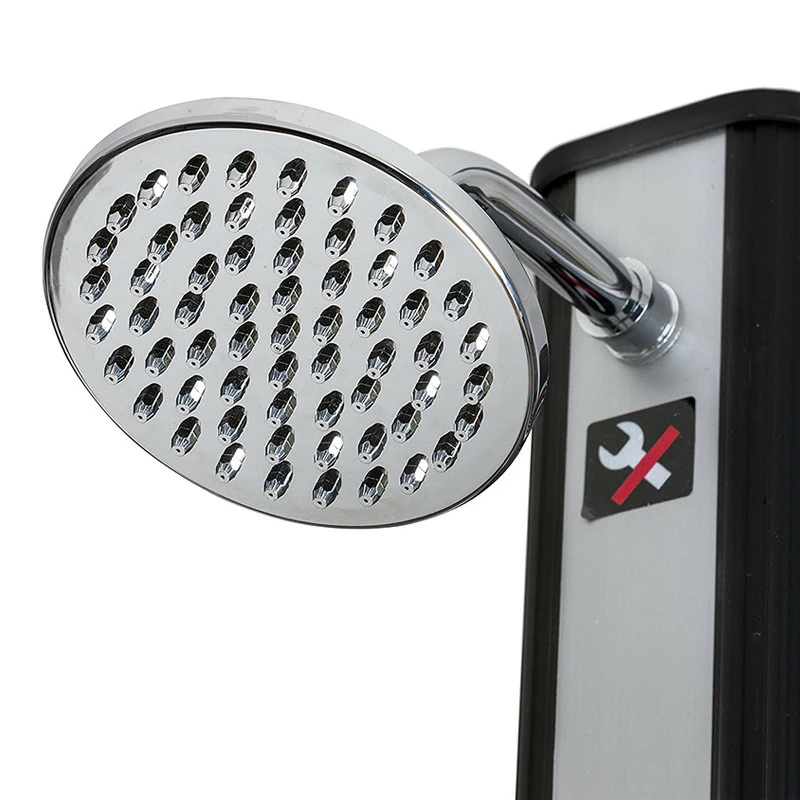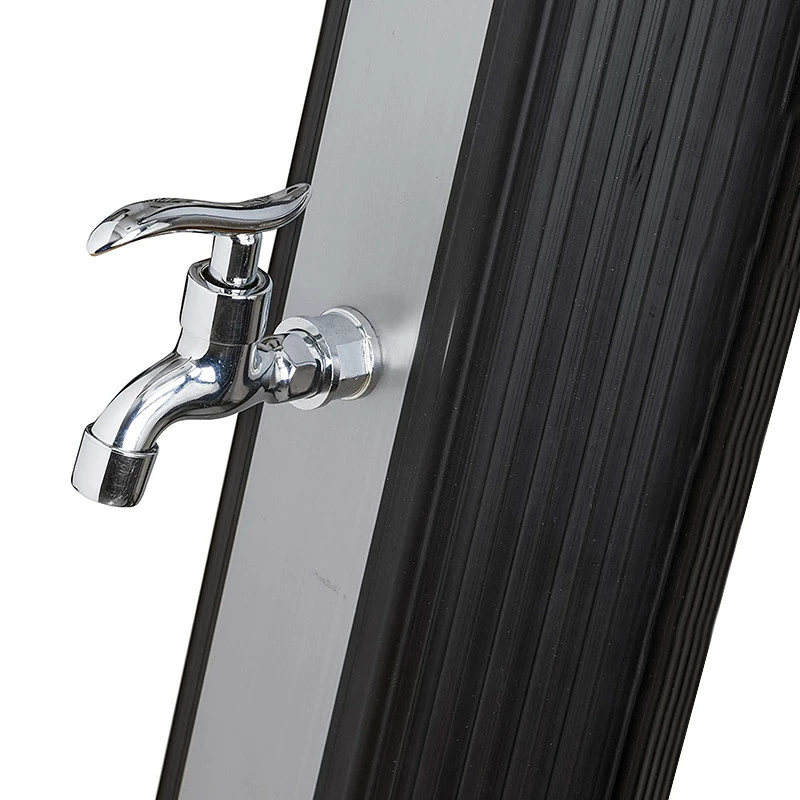 La ducha solar utiliza la energía de los rayos del sol para aumentar la temperatura del agua y proporcionar una ducha de agua más cálida. Mediante el regulador de acero inoxidable de la ducha, puede ajustar la temperatura del agua con la que desea ducharse.