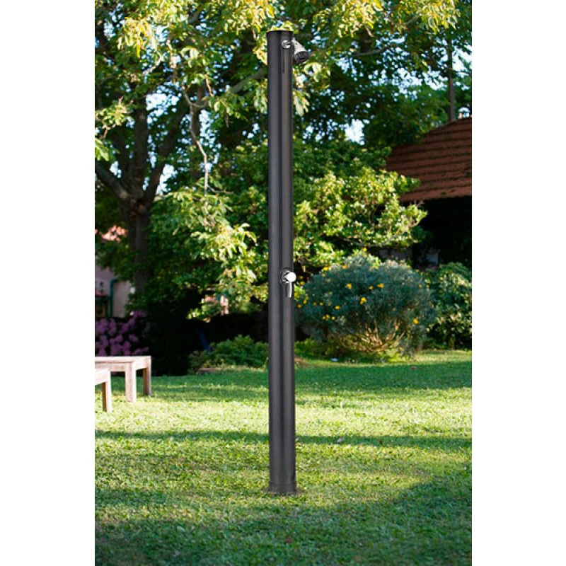 Ducha solar para jardín fabricado en PVC, un modelo ligero y fácil de instalar. Este modelo cuenta con un grifo monomando con el que podrá seleccionar el estado del agua, fría o caliente.