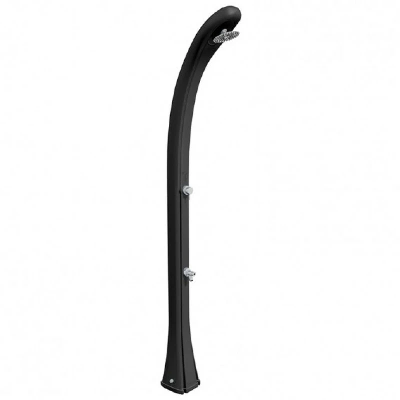 La ducha solar happy de Formidra es un accesorio esencial para exteriores de piscinas, tanto en terrazas como jardín. La ducha solar tiene una válvula mezcladora monomando, un grifo para lavapiés y un tanque de agua de 28 litros que se calienta a través del calor del sol, convirtiendo la ducha solar de Formidia en una ducha 100% sostenible. La base de la ducha garantiza estabilidad, y una fácil instalación a la manguera del jardín o terraza.