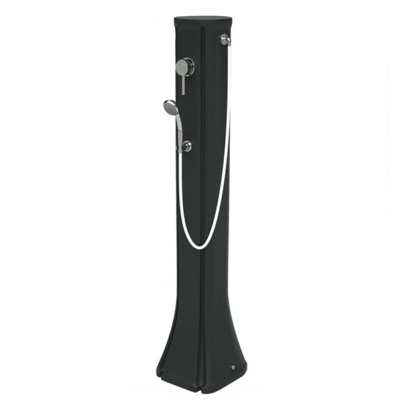 La ducha Happy Go está fabricada en polietileno HD proporcionando una garantía anticorrosión, equipada con un pomo de ducha y un grifo mezclador de temperatura, para el enfriamiento del agua. Lo presentamos en un color, antracita.