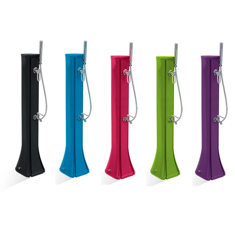 Fabricado en Italia por la marca Formidra, creando una ducha 100% económica y ecológica, gracias a un depósito de agua que se calienta gracias a la ayuda de los rayos solares. Todas las duchas se entregan con sus propios sistemas de fijación.