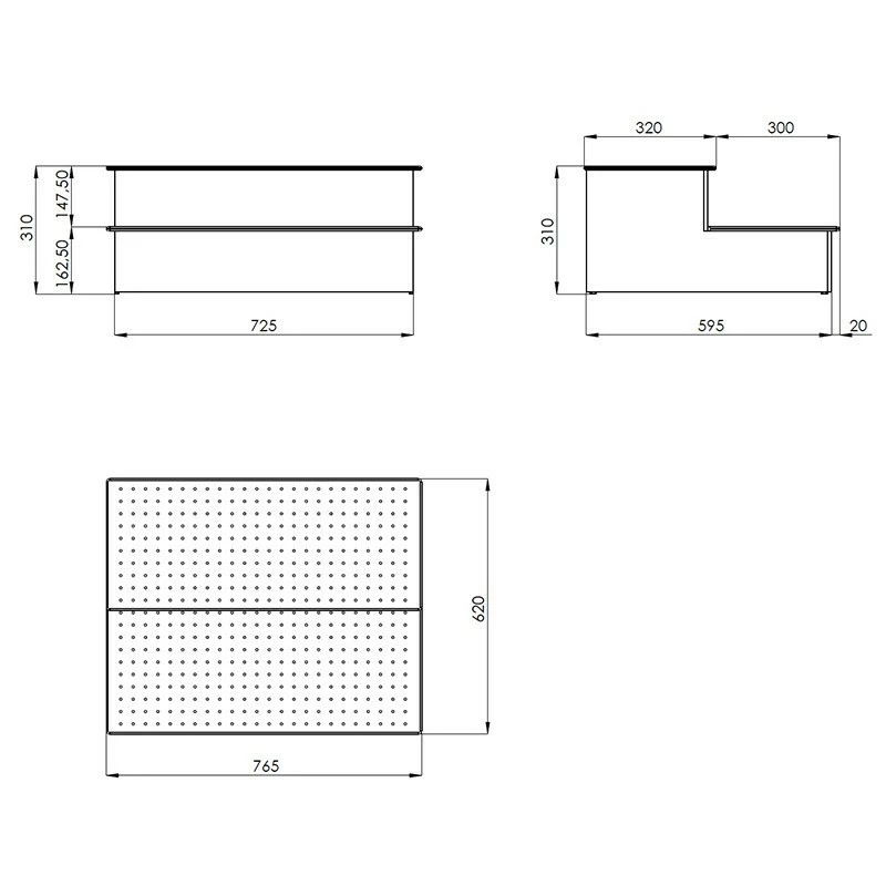 Tamaño de cada peldaño de 76,5 cm de longitud y 320 y 310 cm de anchura.