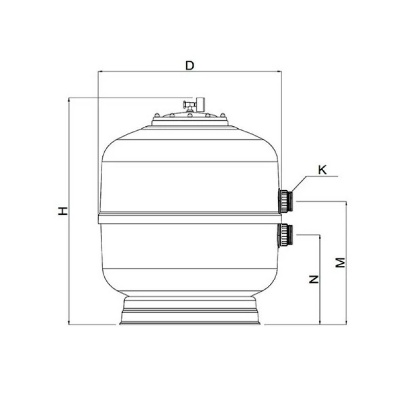 Filtro laminado en poliéster y fibra de vidrio, con tapa atornillada, especialmente diseñado para la depuración del agua de piscinas. Este producto utiliza una presión máxima de trabajo de 2.5 Kg/cm² con una velocidad de filtración de 50m³/h/m².