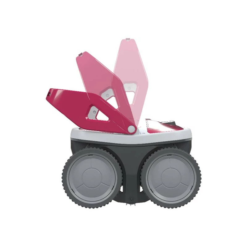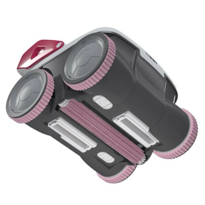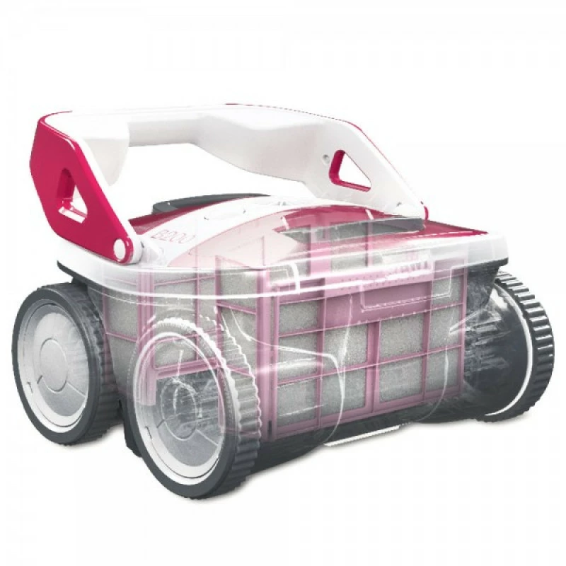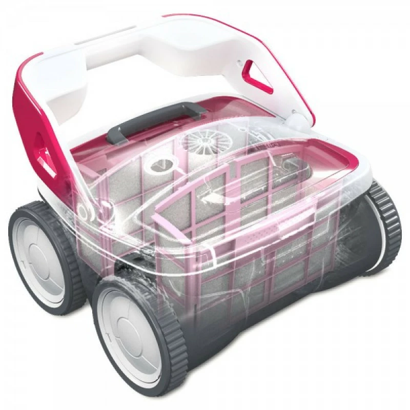 Cuenta con cuatro ruedas grandes las cuales superan cualquier tipo de obstáculo que se interponga en su camino, moviéndose fácilmente por fondo de su piscina