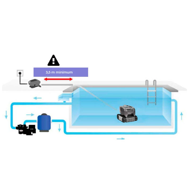 Este robot está especialmente diseñado para piscinas de hasta 9 x 4 metros de longitud, consigue una limpieza absoluta y eficaz tanto del fondo y paredes.