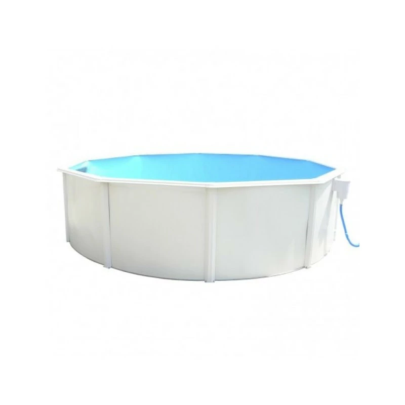 La piscina desmontable Canarias dispone de 5 tamaños diferentes con capacidades que abarcan desde los 4.570L hasta los 35.370L. Las paredes están hechas de acero lacado y cierre con doble fila de tornillos para mayor seguridad. Además contiene perfiles metálicos blancos (15cm/14cm).